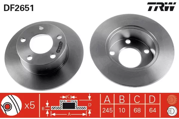 Widok karty produktu w PDF: Tarcza hamulcowa TRW DF2651