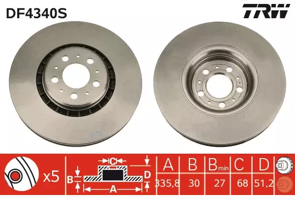 Dodatkowe informacje o Tarcza hamulcowa DF4340S firmy TRW