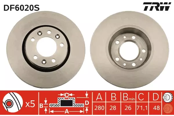 Dodatkowe informacje o Tarcza hamulcowa DF6020S firmy TRW